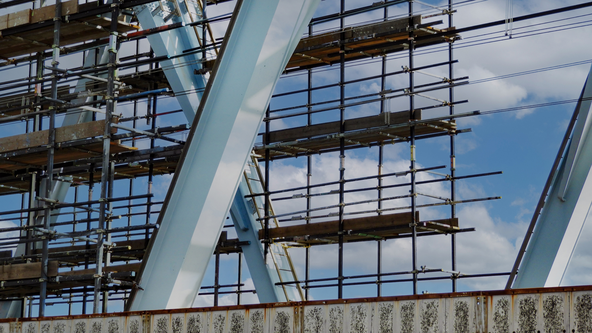 金属やコンクリート表面の劣化を防ぐため、サンドブラスト工事を実施。 高圧空気と研磨材を使用して、汚れや劣化した塗膜を効果的に除去し、新しい塗膜がしっかりと密着するための下地を整えます。 プラント設備や橋梁など、耐久性が重要な構造物の下地調整に最適な工法です。